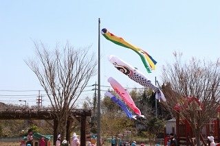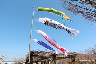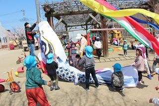 園庭には、一足早く、こいのぼりが泳いでいますよ~
