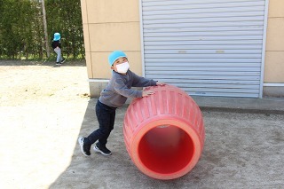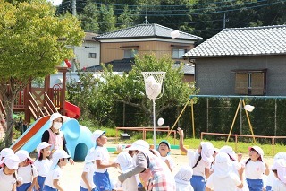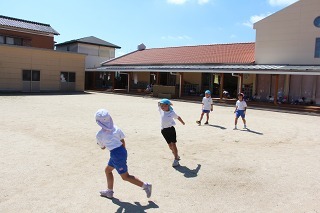 園庭で体いっぱい動かしながら♪
