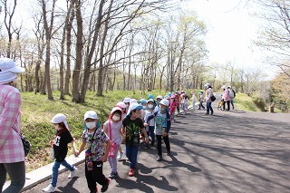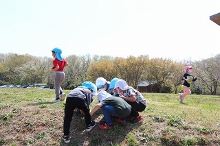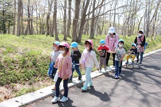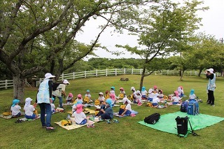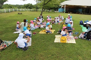年長児は、県民の森にピクニックに行きました♪とても天気の良い午前に、のびのびと走ったり、思い思いの遊びでひと時を過ごしました。楽しかったね♪