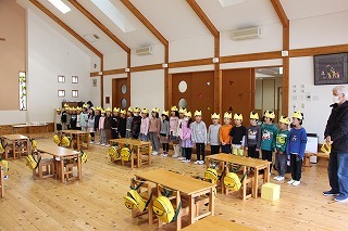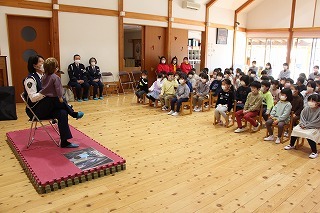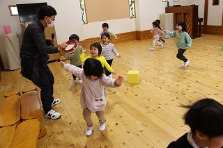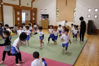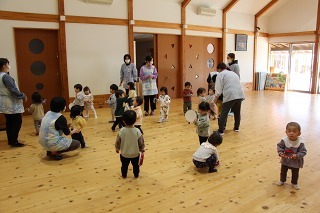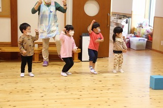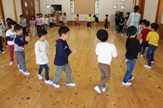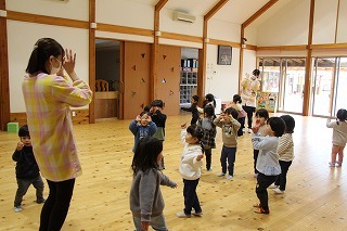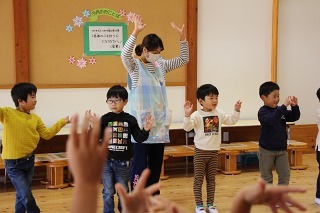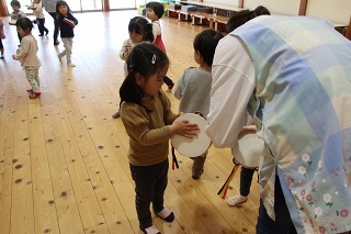 新年度に向けて、マーチング講習が持たれました。講師の先生と一緒に、リズムに乗って体を動かしたり、発声したり、クラスごとに楽しく過ごしました。ゆり組さんは、新年度に向けて、一人ずつ小太鼓を叩いてみました♪