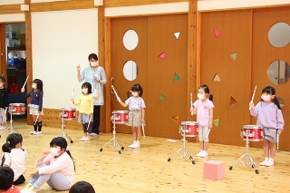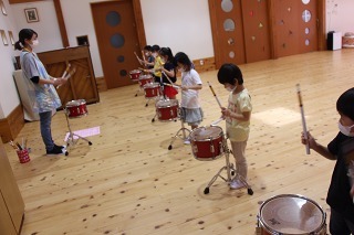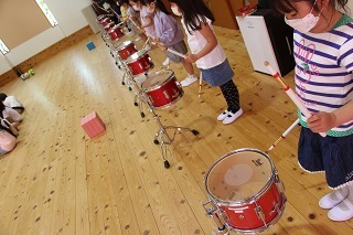 講師の樋口先生をお迎えして、今年度のマーチング講習がスタートし、リトル★エンジェルスが始動しましたよ♪リズムに乗って体を動かしたり、(マスク着用で)発声をおこなったり、年長児は小太鼓にチャレンジしました。多くの刺激を受けて、心も体も活発になるひと時、成長のひと時です♪