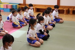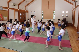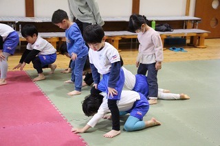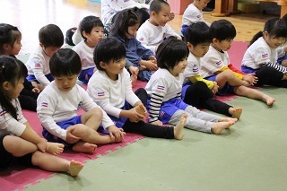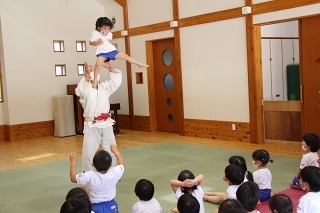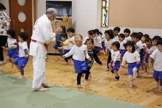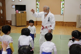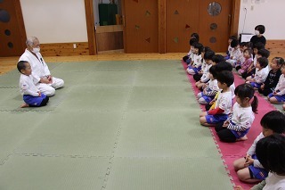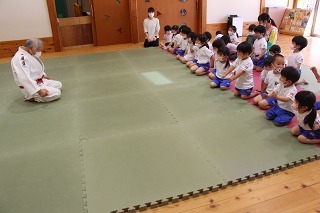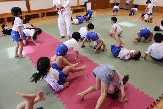 毎月1度の柔道教室。楽しい先生のお話を聞きながら、体をいっぱい動かして、元気いっぱいのひと時。みんなが大好きな先生との時間です♪