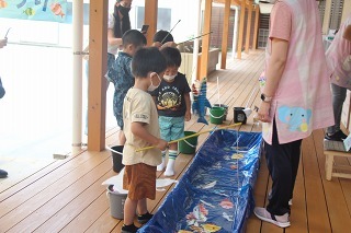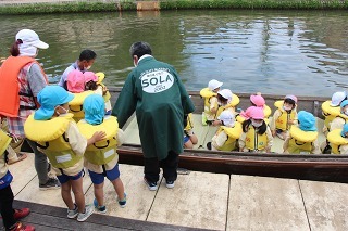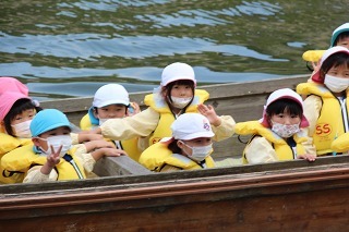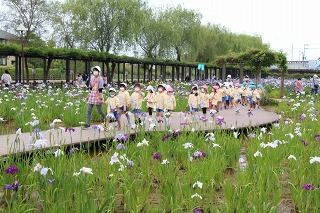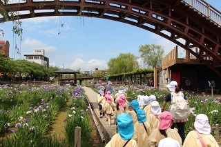 さくら組さんは、あやめ祭りに行って、あやめ見学、そしてろ舟体験をしてきました!初めて乗る子どもたちはワクワクドキドキのひと時、ゆっくり漕ぎながら進むろ舟に揺られるひと時を楽しみました♪沢山咲いているお花もとっても綺麗でした!