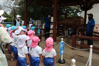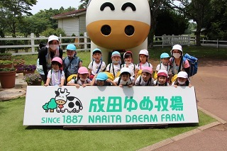ゆり組さんは、園バスに乗って成田ゆめ牧場へ遠足に行ってきました。とっても良いお天気でしたが、お客さんも多くなかったので、のびのびと楽しんできました。芝滑り、牛の乳しぼり体験、楽しいお弁当、動物たちとの触れ合いなど、良い経験をして帰ってきました♪