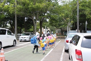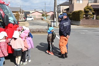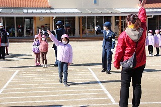 交通安全教室がもたれました。みんなよーくお話に耳を傾けて、大切なことを学びました。小学生になる年長児さんたちは、園庭で横断歩道の渡り方を練習しました!