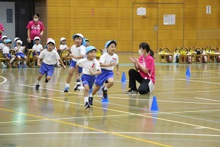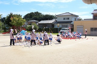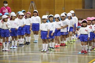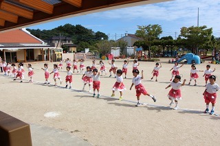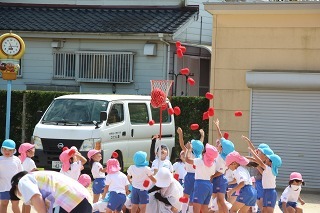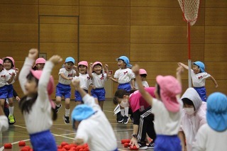 園庭では、運動会の練習が始まっています。開会式、ラジオ体操、かけっこの練習も。玉入れや各クラスのお遊戯も、楽しみながら、皆がんばっています♪