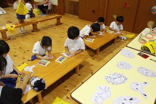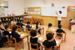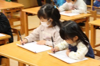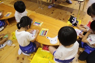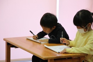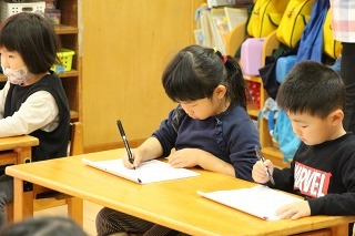 年中児、年長児さんは、月に3~4回ほど、ペン字講習の時間を楽しく頑張っています。先生の丁寧で分かりやすい指導を頂いて、みんな集中モード★