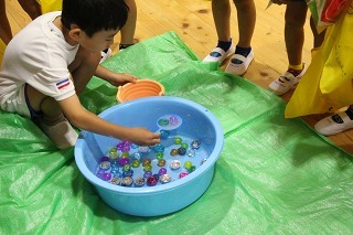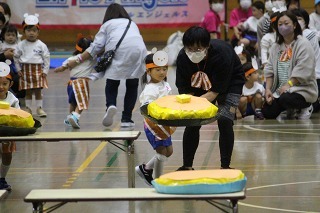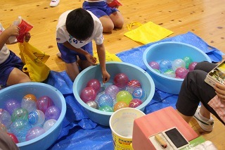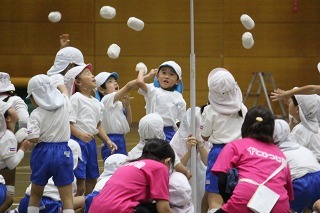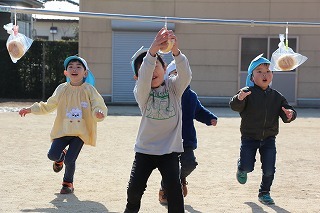 たーくさんのアンパンマンが届きました♪楽しみにしていたアンパンマン大会。今回も衛生面を考えて、手で取ることになりました。よーいどん!の掛け声で、元気いっぱいに走ってアンパンマンを手にしていました★