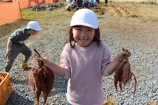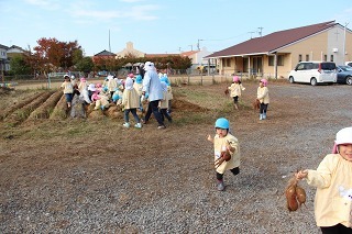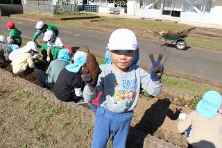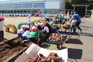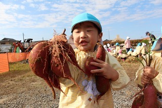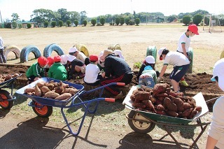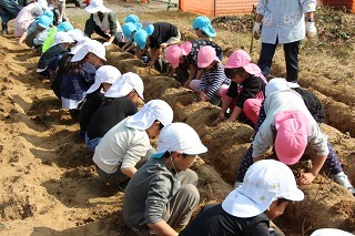 さくら組は、津知小学校に行って、1年生と一緒にサツマイモ掘りをしてきました。( 1年生と一緒に、サツマイモ苗植をしましたそのお芋です。)