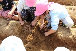 サツマイモ掘り(さくら組:津知小学校での交流)