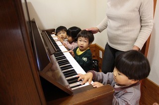 こひつじ園リトミック講師によるリトミックがもたれました。ピアノのリズムに乗って、体を動かしたり、楽器を奏でたり、楽しいひと時です♪