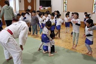 新年度の柔道教室(月1)が始まりました。「柔道」と言っても、柔らかい畳の上で、体をいっぱい動かしながら、講師と一緒に楽しく過ごすひと時です!沢山のユーモアを交えながら仮屋先生が指導してくださっています★