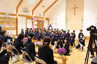 今年も、防災アリーナの音楽ホールをお借りして、感染対策を行いながら、以上児さんたちのクリスマス会がもたれました。それぞれのクラスの発表、一人一人の成長を感謝する嬉しいひと時となりました。ご協力ありがとうございました!