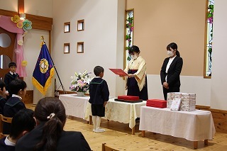 第45回卒園式が執り行われました。天候は雨となりましたが、新しい出発に希望を抱きながら、立派に卒園していきました。小学校で新しく踏み出す道のりに、神様の祝福が豊かにありますようお祈りしています!心からおめでとうございます!