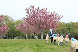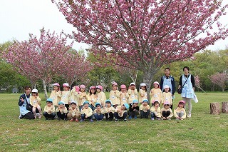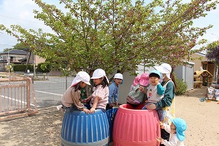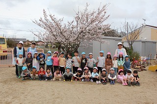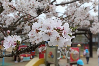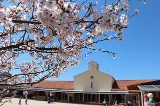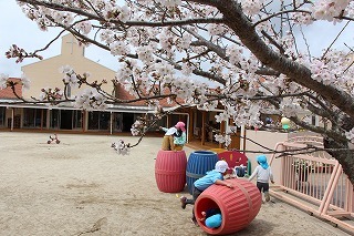 入園式には桜の開花が間に合いませんでしたが、園庭の桜が満開に!あたたかい陽気の中で、元気いっぱい遊び始めています♪