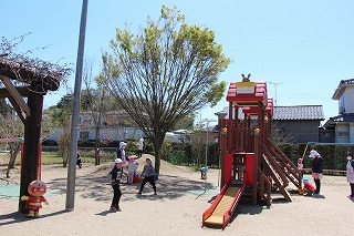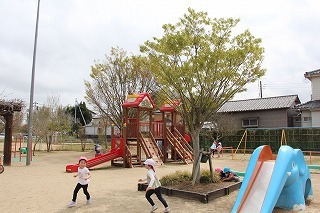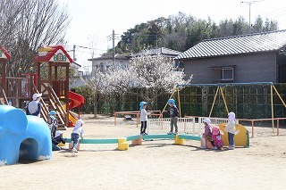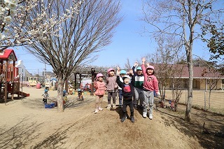 とっても良いお天気、サクラの咲く園庭でのびのびと遊んでいます♪