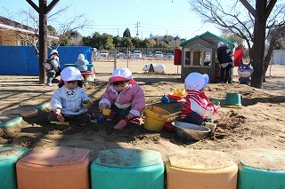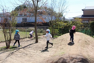 ひよこ組さんたちも歩ける(走れる)ようになって、広い園庭でのびのびと遊んでます★お山遊びを楽しむ様子もみられます♪