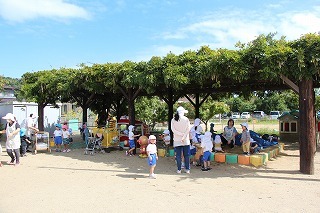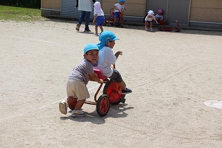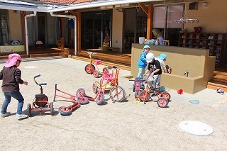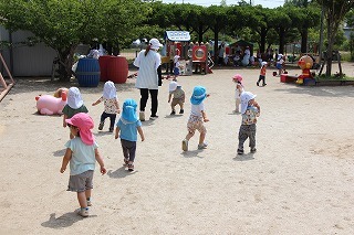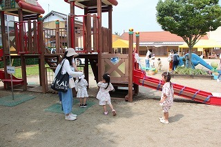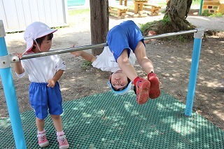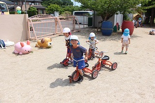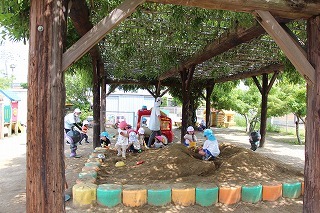 朝の日課を行い、カリキュラムに沿ってそれぞれのクラスの一日がスタートです♪未満児のお子さんも園庭でのびのび遊んでいます。思い思いの遊びを楽しんで、考えて、工夫して、チャレンジして、元気いっぱい活動しています♪新緑もとても綺麗です。(6/20)