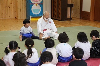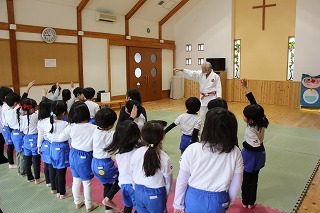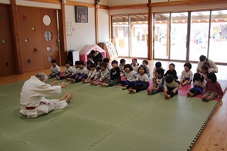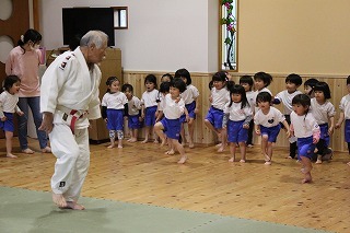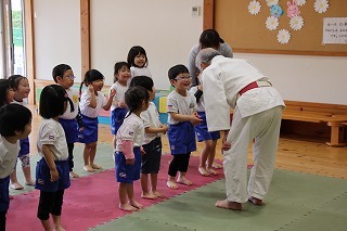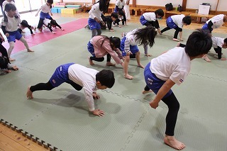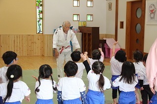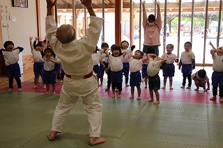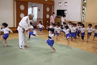 今月も柔道の時間がもたれましたよ。ばら組、ゆり組、さくら組さんは、仮屋先生と一緒に体をたくさん動かして、元気な声を響かせて、楽しい時を過ごしました♪