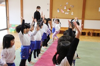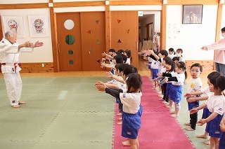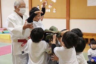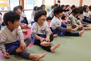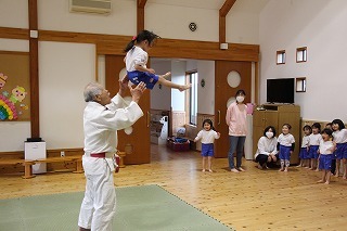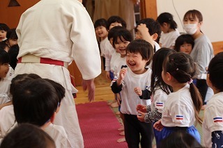 今日は、ばら組さんたちにとって、はじめての柔道教室。講師の仮屋先生のかけごえや関わりで、みんな大きな声で張り切って体を動かしたり、笑ったり、走ったり、楽しいひと時を過ごしました♪