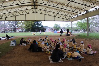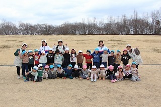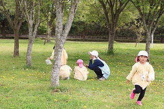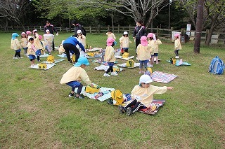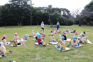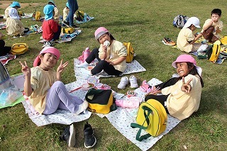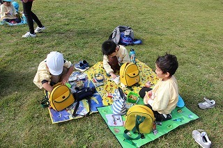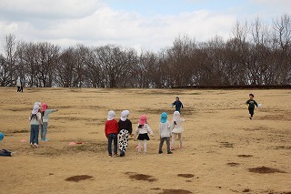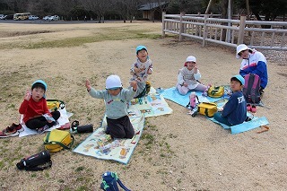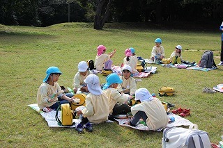 年長児さんは、県民の森にピクニックに出かけました。おやつを食べてから、ひろーい広場が貸し切り状態で、思いっきり体を動かして遊びましたよ♪