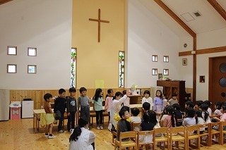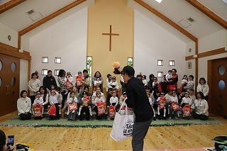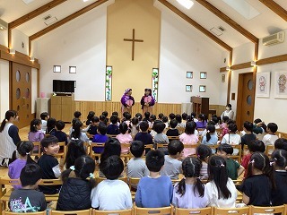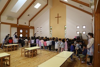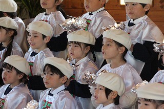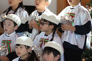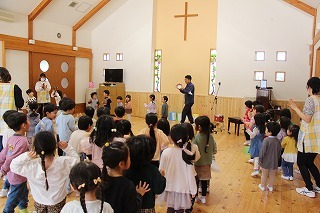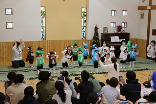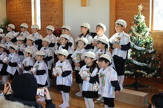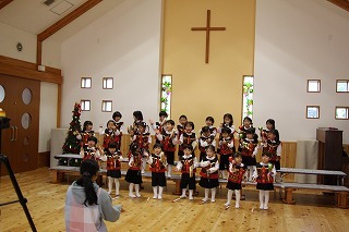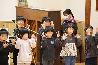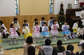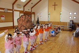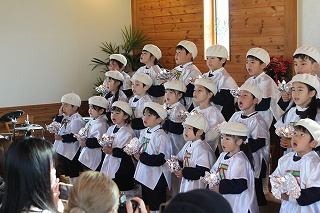 水郷めぐみ教会で行われた「クリスマス音楽礼拝」に、さくら組が子ども聖歌隊としてゲスト出演しました。元気いっぱい、クリスマスの賛美を歌うことが出来ました!また、音楽ゲストのビョン・ホギルさん(元劇団四季俳優:現在、劇団四季で歌の講師として指導)の迫力ある歌声を聞くことが出来ました。保護者の皆様のご協力を心から感謝いたします!