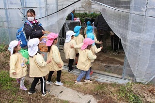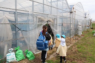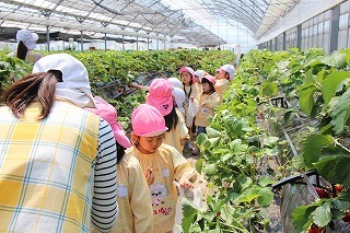 さくら組さんたちも園バスに乗って、イチゴ狩りに行きました。ひろーいハウスの中で、たくさんの甘いイチゴを摘みながら頂くことが出来ました。みんな大満足で帰ってきました♪