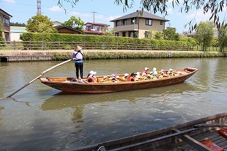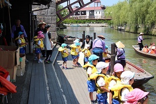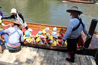 今日はとっても良いお天気、年長児さんたちは、園バスに乗ってあやめ公園へ行き、あやめ見学&ろ舟体験をさせて頂きました!ゆったりと舟に揺られながら、楽しいひと時となりました^^