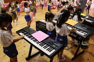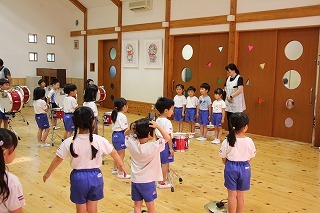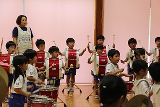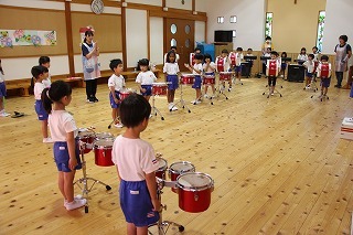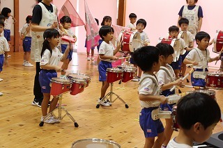 今日は、マーチングで初めての合奏を行いました。来週は、講師が来園してのマーチング講習の予定です!各パートごとに楽しみながら練習に励んでいますよ♪