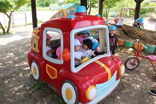避難訓練(消防車、来園!)