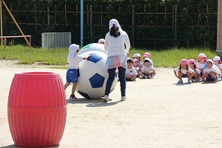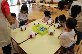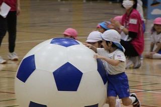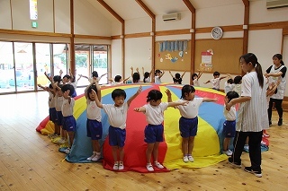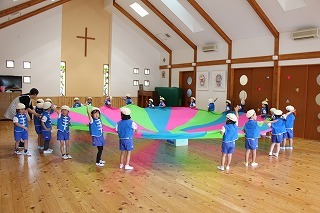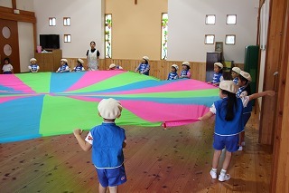 パートごとに、マーチング練習も励んでいます♪ホールでは、年中児さんたちがバルーンの練習を楽しんでいました。