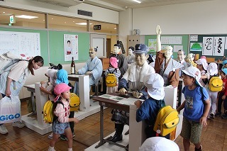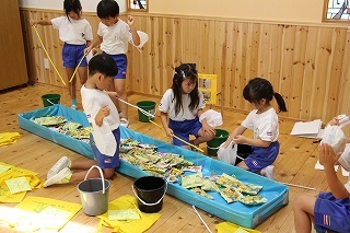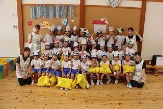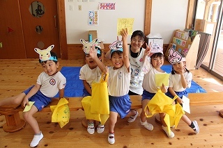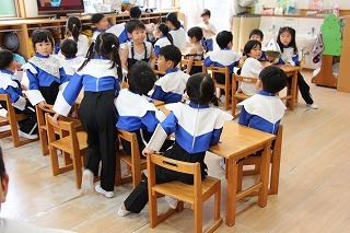 さくら組は、津知小学校へ行きました。1年生が「秋フェスタ」を準備して開催して下さって、一緒に楽しいひと時を過ごすことが出来ました♪津知小学校へ進学する子どもたちは、来年は1年生としてさくら組を迎えてくれることになります。今年は、1年生と一緒に「さつまいも苗植え」「さつまいも掘り」もさせて頂き、心から感謝いたします!