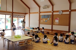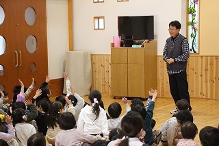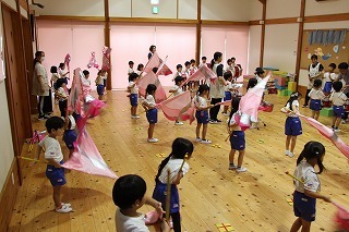ゲストをお迎えして、南京玉すだれの鑑賞でした。はじめて見る子ども達も、とっても楽しく鑑賞することが出来ました♪ありがとうございました!