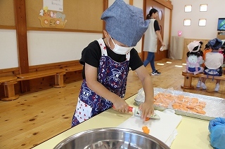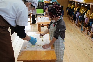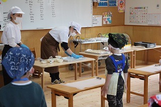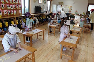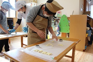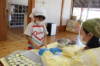 さくら組さんは、栄養士の指導のもとでクッキー作りを体験しました!美味しいクッキーができて、みんな大喜び!卒園まで残りの期間もわずかですが、一つ一つの体験を通して楽しい思い出を作っていきたいと願っています♪
