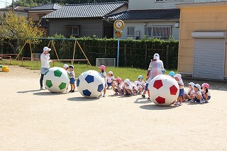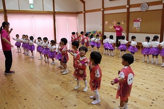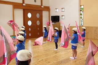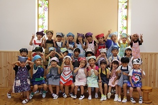 いよいよ10月ですね。運動会に向けて、マーチング、おゆうぎ等、練習を楽しんでいます。そして、衣装を着ての記念撮影を行いましたよ♪当日が、楽しみですね!