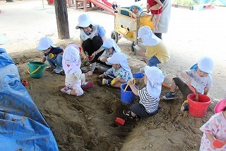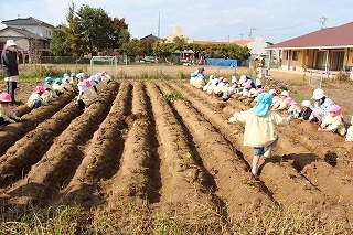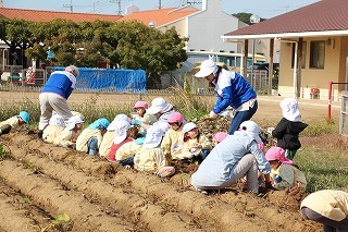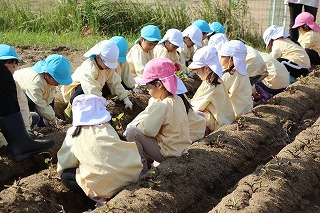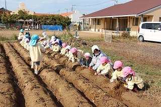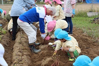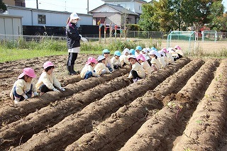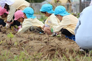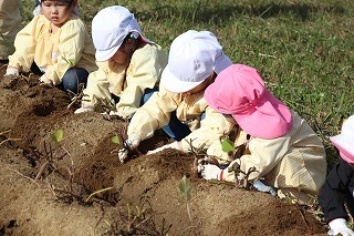 天気も守られて、予定通りに、さつまいも掘りを行いました。さくら・ゆり・ばら組で掘ることが出来ましたよ♪今年はとっても豊作で、おいしそうなお芋を楽しみながら、次々に収穫して大興奮。持ち帰りましたお芋を、ぜひお子さんと一緒に召しあがってください★
