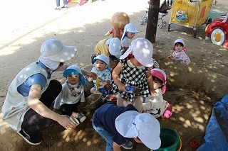とっても良いお天気を感じながら、シャボン玉大会が行われました♪みんなそれぞれストローを上手に使いながら、沢山のシャボン玉を飛ばしました。園にあるシャボン玉マシーンも大活躍。無数に飛び出てくるシャボン玉に、子ども達も大喜び!楽しいひと時を過ごすことができました★お外でも元気いっぱい活動しています!