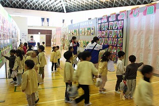 さくら組(年長児)の作品も展示されたので、バスに乗って見学に行ってきました。市内のこども園や小学生、中学生、また様々なジャンルの作品を見学することも出来ました♪