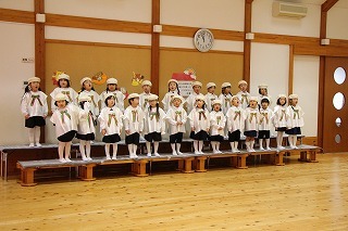 ばら、ゆり、さくら組のクリスマス会が行われました。この日に備えて、みんな楽しんで練習を重ねてきました。みんなとっても上手でしたね!保護者の皆様のご協力を心から感謝いたします!