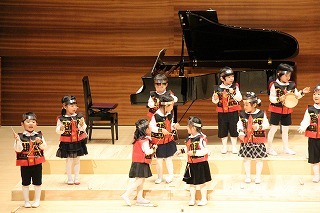 毎月、リトミック★が行われています。講師の先生のピアノに合わせてリズムをとって、楽器を使ったり、体を動かしたり♪