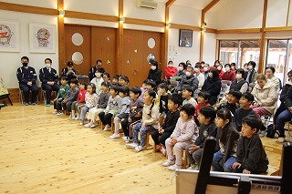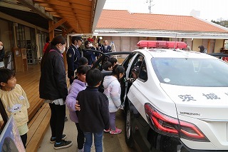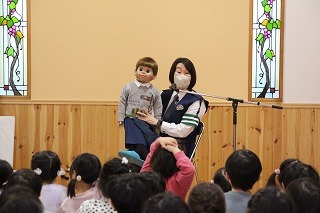 さくら組と保護者を対象にした「世代間交流型交通安全教室」が行われました。おじいちゃんやおばあちゃんの参加もありがとうございました!毎年、交通安全教室を行っていますが、今年はパトカーに乗せて頂いたり、保護者は「シートベルト・コンビンサー」で衝撃体験もさせて頂きました。大切なことを教えて頂いたひと時、ありがとうございました!