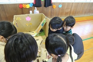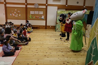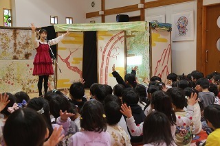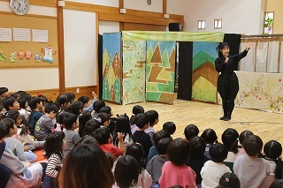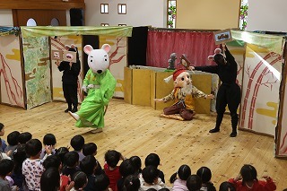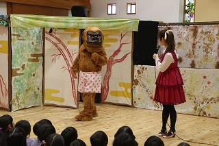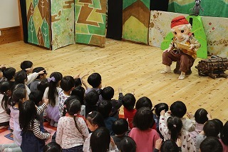 みんなが楽しみにしていたこぐま座観劇が行われました。大小のクラスに分かれて2部構成でのプログラム。みんな心から楽しんで、お歌を歌ったり、観劇のひと時を過ごしました♪
