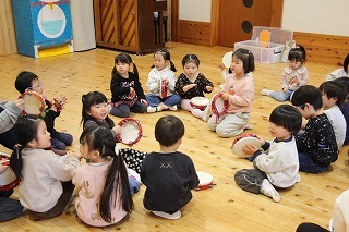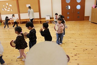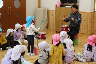 マーチング講習が行われました。来年度のリトル★エンジェルスで合奏するゆり組さんは、先生のお話を聞きながら太鼓を叩く経験も。いよいよ自分たちの番だ~というワクワク感が出てきます。(※3月1日には、潮来市のイベントにお声がけ頂きまして、さくら組さんはマーチング演奏出演いたします!)