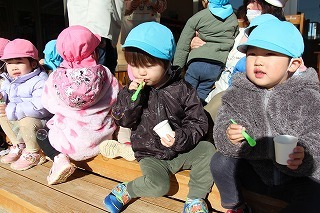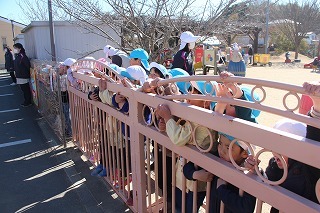 マーチング演奏を依頼をいただいて、さくら組は園バスに乗って北浦へ~。一生懸命、それぞれの楽器を奏でて演奏することが出来ました。みんなで作った手作りメダルもプレゼント出来ました♪