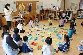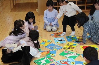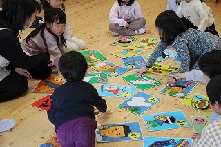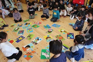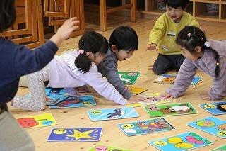 ばら・ゆり・さくら組は、かるたとり大会を行いました。先生が読み上げる言葉を聞いて、今まで覚えた字を思い出しながら、「はい!」という掛け声と共に、カードに手を伸ばしていきました♪みんなそれぞれ喜んで賞状を受け取っていました!