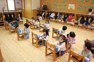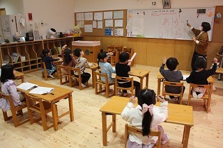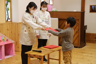 卒園式に向けて、年長児さんたちは練習をスタートしています。ひとりひとり、証書の受け取り方を覚えて、新しい出発の日に備えています。