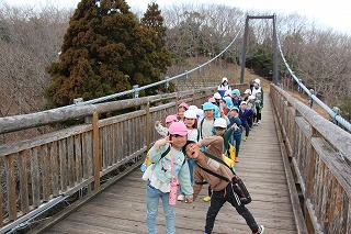 今日は、ゆり組さんが、アンパンマンバスに乗って県民の森へピクニックへ出かけました♪すがすがしいお天気で、元気いっぱい体いっぱい動かして、走ったり、お花を摘んだり、思い思いの遊びを楽しみました♪帰りは、森林浴をしながらお散歩し、つり橋も渡りましたよ!(動画は、限定公開です)
