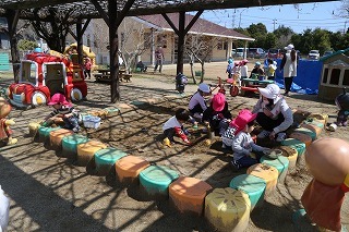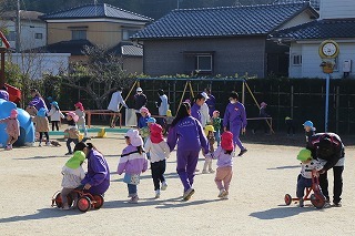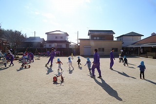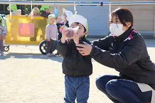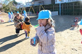 潮来一中の授業の一環で、2日間にわたって保育体験が行われました。準備してくれたオモチャで遊んだり、お外で一緒に元気いっぱい体を動かしたり、子どもたちもお兄ちゃんお姉ちゃんたちと遊んでもらえることで大喜び♪楽しいひと時をありがとうございました!