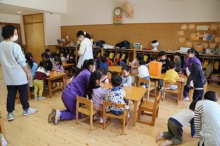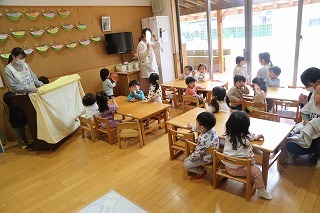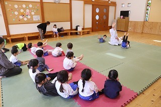 保育参観の初日は、さくら組でした。みんなで毎年恒例のアンパンマン大会を行いましたよ!