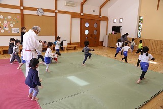 今年度の柔道教室がスタートしました。ばら・ゆり・さくら組の3クラスが、それぞれ先生と一緒に体をいっぱい動かしながら楽しく過ごします♪職員室まで、楽しそうな掛け声や笑い声が聞こえてきます★ばら組さんは、はじめての教室でしたが、とっても楽しそうに体を動かしていました~